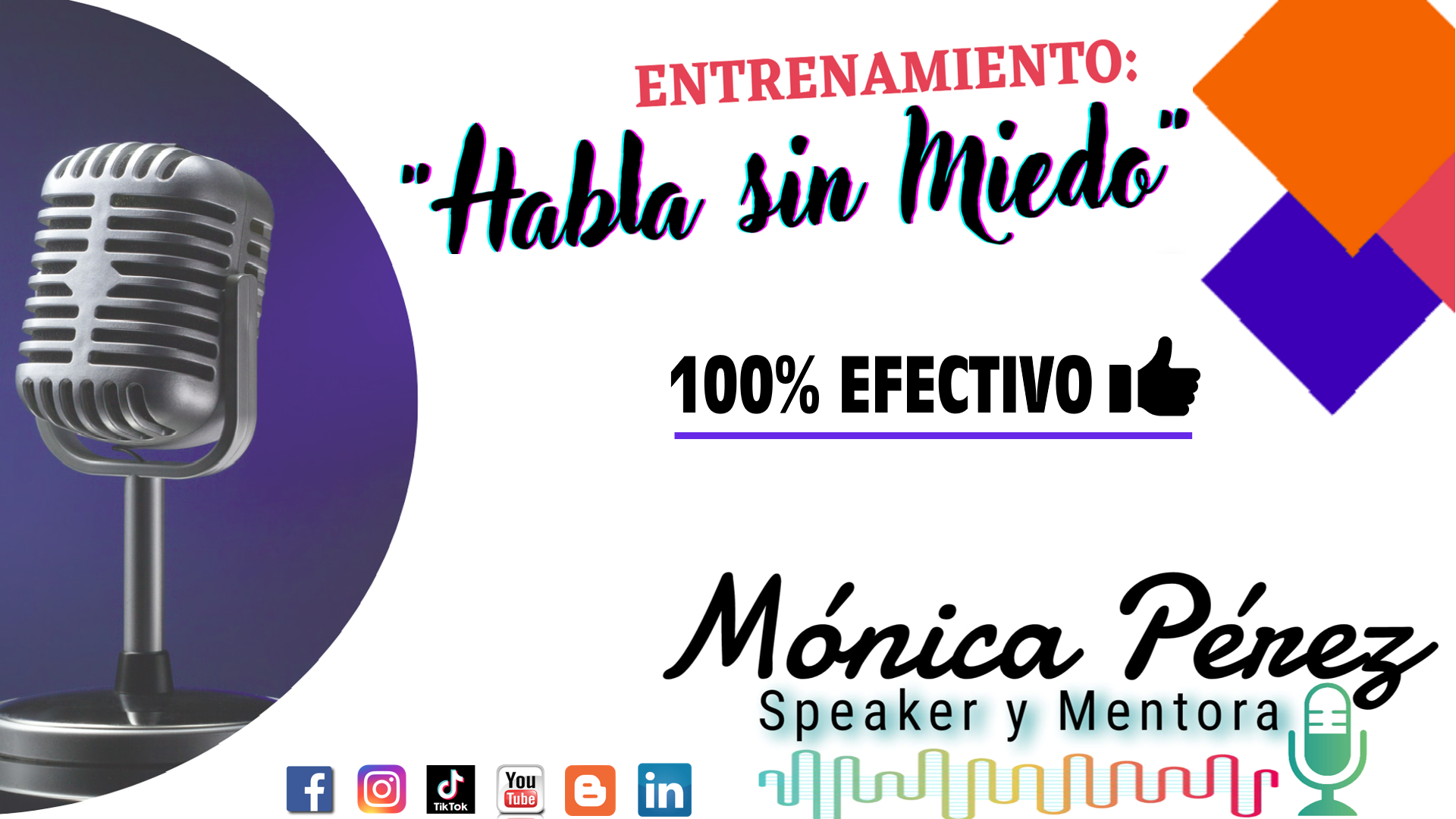Con este entrenamiento tu vida cambiara por completo, trabajaras con tu oratoria para desarrollar un discurso efectivo con técnicas de storytelling, elevator pitch, además de manejar adecuadamente y potencia tu voz, por ultimo dominar tu lenguaje corporal para asi enviar mensajes asertivos y congruentes a tu interlocutor.